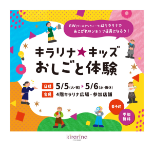 【4/6予約受付開始】5/5・6 キラリナ★キッズおしごと体験